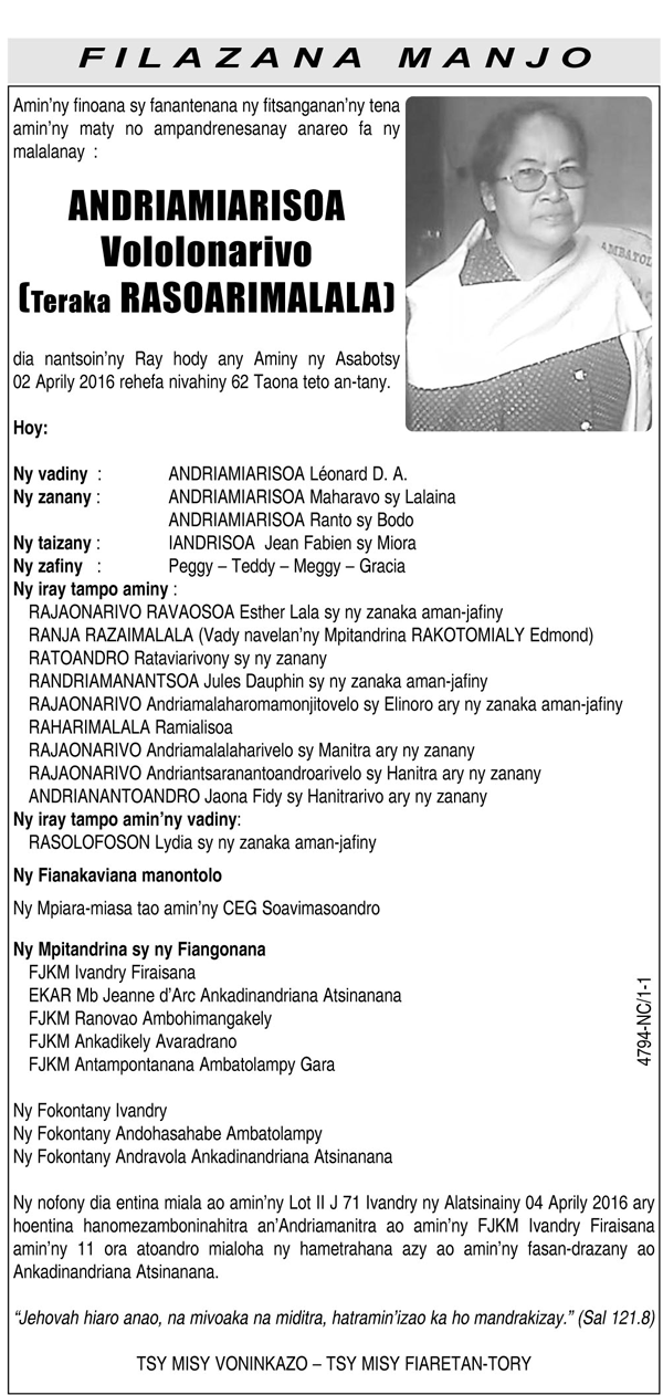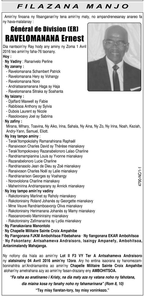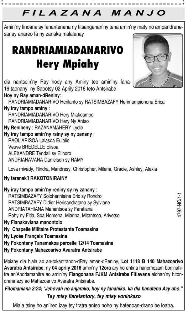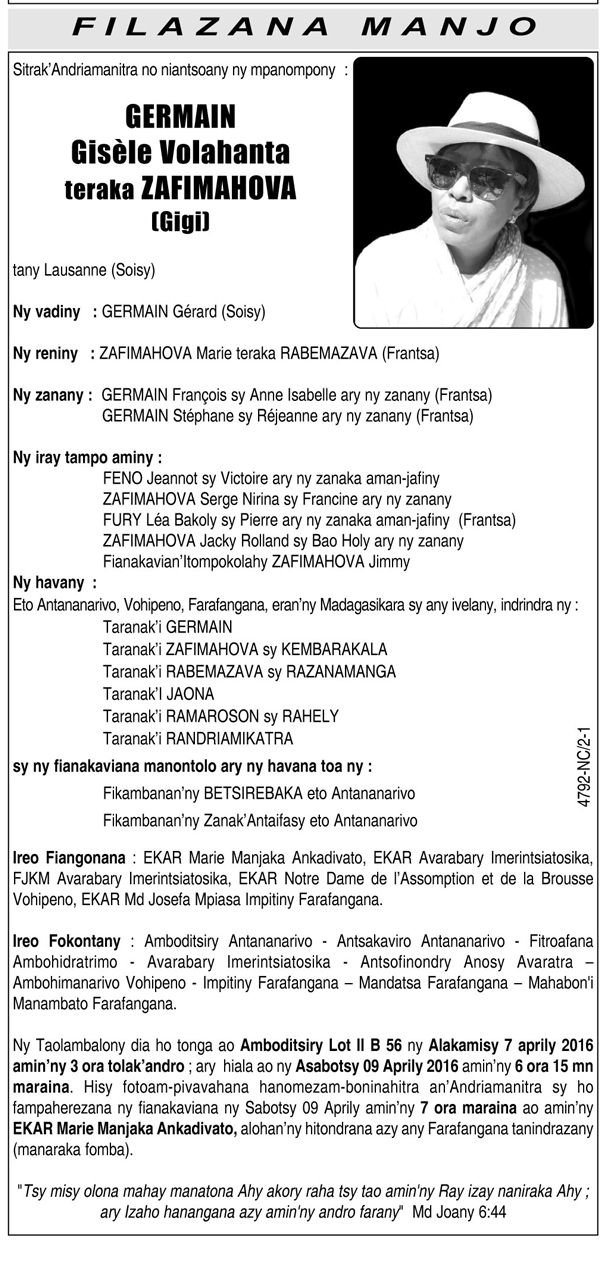 Nécrologie du 04 avril 2016