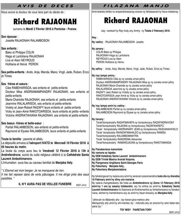 AccueilNécrologieNécrologie du 09 février 2016 Nécrologie 9 février 2016 Nécrologie du 09 février 2016 Temps de lecture : Moins de 1 min. Partager FacebookTwitterPinterestWhatsApp Vous souhaitez accéder aux journaux Midi et Gazetiko entiers en PDF ? Cliquez ici - Publicité - - Publicité - - Publicité - Suivez nous 419,278FansJ'aime14,461SuiveursSuivre5,417SuiveursSuivre1,920AbonnésS'abonner Articles qui pourraient vous intéresser LAISSER UN COMMENTAIRE Annuler la réponse Commenter : S'il vous plaît entrez votre commentaire! Nom :* S'il vous plaît entrez votre nom ici Email :* Vous avez entré une adresse email incorrecte! Veuillez entrer votre adresse email ici Site : Enregistrer mon nom, email et site web dans ce navigateur pour la prochaine fois que je commenterai.