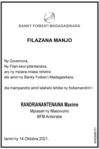 Siège : Lalana Ravoninahitriniarivo , BP 1414, Antananarivo