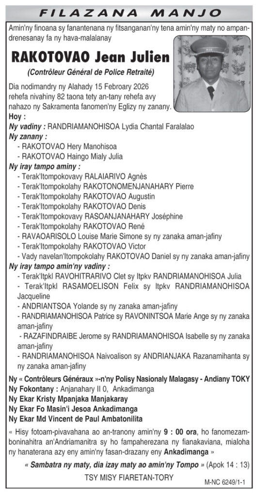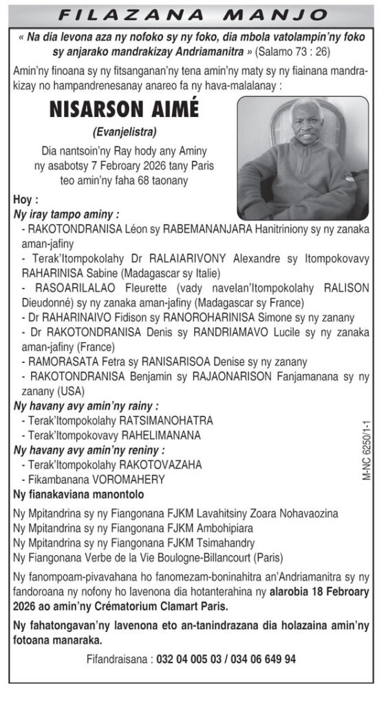 AccueilNécrologieNécrologie du 17 février 2026 Nécrologie 17 février 2026 Nécrologie du 17 février 2026 Temps de lecture : Moins de 1 min. Cliquez pour agrandir Partager FacebookTwitterPinterestWhatsApp Vous souhaitez accéder aux journaux Midi et Gazetiko entiers en PDF ? Cliquez ici - Publicité - - Publicité - - Publicité - Suivez nous 419,278FansJ'aime14,461SuiveursSuivre5,417SuiveursSuivre1,920AbonnésS'abonner S'abonner à notre newsletter Recevez chaque mercredi matin à 8h, directement dans votre boîte mail, l’essentiel de l’actualité et les informations importantes à ne pas manquer. Nom et prénom Ville Adresse e-mail Laissez ce champ vide si vous êtes humain : Articles qui pourraient vous intéresser LAISSER UN COMMENTAIRE Annuler la réponse Commenter : S'il vous plaît entrez votre commentaire! Nom :* S'il vous plaît entrez votre nom ici Email :* Vous avez entré une adresse email incorrecte! Veuillez entrer votre adresse email ici Site : Enregistrer mon nom, email et site web dans ce navigateur pour la prochaine fois que je commenterai. Δ S'abonner à notre newsletter Recevez chaque mercredi matin à 8h, directement dans votre boîte mail, l’essentiel de l’actualité et les informations importantes à ne pas manquer. Nom et prénom Ville Adresse e-mail Laissez ce champ vide si vous êtes humain :