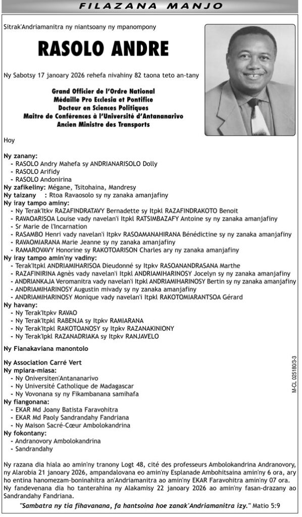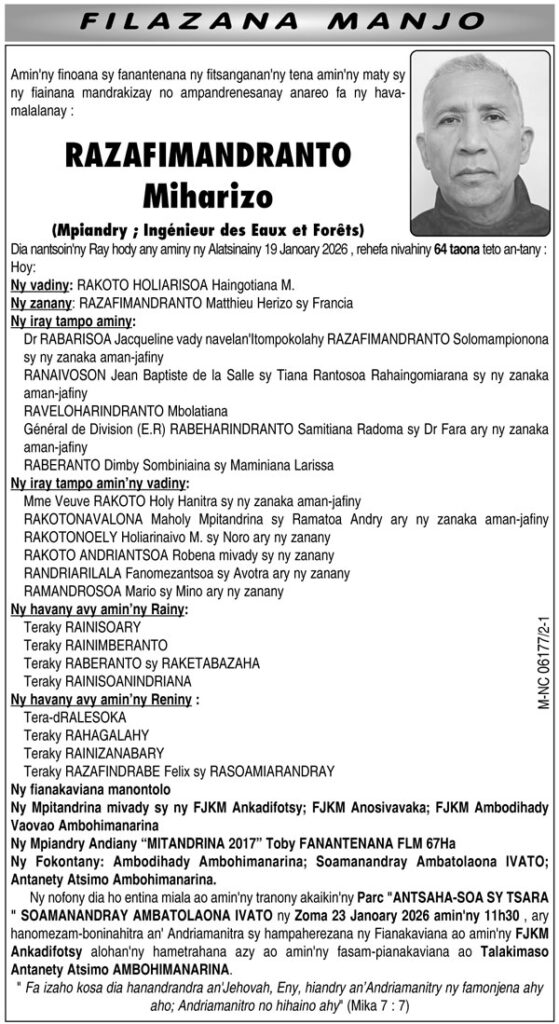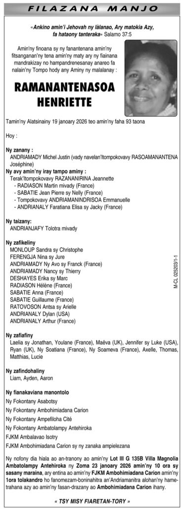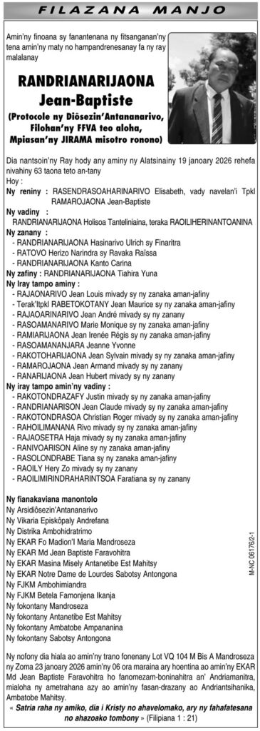 AccueilNécrologieNécrologie du 21 janvier 2026 Nécrologie 21 janvier 2026 Nécrologie du 21 janvier 2026 Temps de lecture : Moins de 1 min. Cliquez pour agrandir Partager FacebookTwitterPinterestWhatsApp Vous souhaitez accéder aux journaux Midi et Gazetiko entiers en PDF ? Cliquez ici - Publicité - Suivez nous 419,278FansJ'aime14,461SuiveursSuivre5,417SuiveursSuivre1,920AbonnésS'abonner S'abonner à notre newsletter Recevez chaque mercredi matin à 8h, directement dans votre boîte mail, l’essentiel de l’actualité et les informations importantes à ne pas manquer. Adresse e-mail Laissez ce champ vide si vous êtes humain : Articles qui pourraient vous intéresser LAISSER UN COMMENTAIRE Annuler la réponse Commenter : S'il vous plaît entrez votre commentaire! Nom :* S'il vous plaît entrez votre nom ici Email :* Vous avez entré une adresse email incorrecte! Veuillez entrer votre adresse email ici Site : Enregistrer mon nom, email et site web dans ce navigateur pour la prochaine fois que je commenterai. Δ S'abonner à notre newsletter Recevez chaque mercredi matin à 8h, directement dans votre boîte mail, l’essentiel de l’actualité et les informations importantes à ne pas manquer. Adresse e-mail Laissez ce champ vide si vous êtes humain :