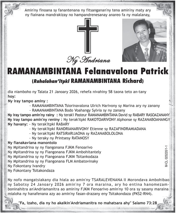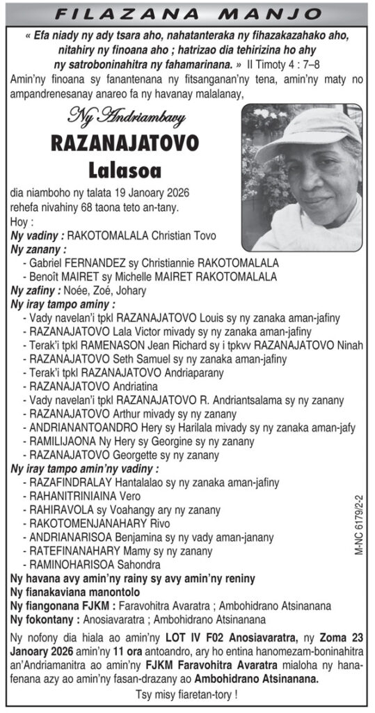 AccueilNécrologieNécrologie du 23 janvier 2026 Nécrologie 23 janvier 2026 Nécrologie du 23 janvier 2026 Temps de lecture : Moins de 1 min. Cliquez pour agrandir Partager FacebookTwitterPinterestWhatsApp Vous souhaitez accéder aux journaux Midi et Gazetiko entiers en PDF ? Cliquez ici - Publicité - Suivez nous 419,278FansJ'aime14,461SuiveursSuivre5,417SuiveursSuivre1,920AbonnésS'abonner S'abonner à notre newsletter Recevez chaque mercredi matin à 8h, directement dans votre boîte mail, l’essentiel de l’actualité et les informations importantes à ne pas manquer. Nom et prénom Ville Adresse e-mail Laissez ce champ vide si vous êtes humain : Articles qui pourraient vous intéresser LAISSER UN COMMENTAIRE Annuler la réponse Commenter : S'il vous plaît entrez votre commentaire! Nom :* S'il vous plaît entrez votre nom ici Email :* Vous avez entré une adresse email incorrecte! Veuillez entrer votre adresse email ici Site : Enregistrer mon nom, email et site web dans ce navigateur pour la prochaine fois que je commenterai. Δ S'abonner à notre newsletter Recevez chaque mercredi matin à 8h, directement dans votre boîte mail, l’essentiel de l’actualité et les informations importantes à ne pas manquer. Nom et prénom Ville Adresse e-mail Laissez ce champ vide si vous êtes humain :