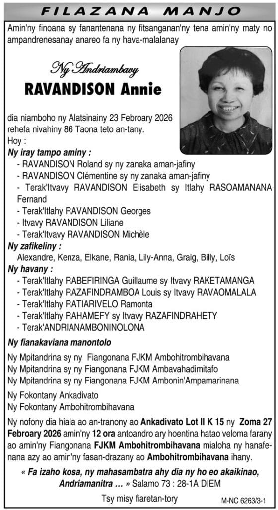 AccueilNécrologieNécrologie du 25 février 2026 Nécrologie 25 février 2026 Nécrologie du 25 février 2026 Temps de lecture : Moins de 1 min. Cliquez pour agrandir Partager FacebookTwitterPinterestWhatsApp Vous souhaitez accéder aux journaux Midi et Gazetiko entiers en PDF ? Cliquez ici - Publicité - - Publicité - - Publicité - Suivez nous 419,278FansJ'aime14,461SuiveursSuivre5,417SuiveursSuivre1,920AbonnésS'abonner Articles qui pourraient vous intéresser LAISSER UN COMMENTAIRE Annuler la réponse Commenter : S'il vous plaît entrez votre commentaire! Nom :* S'il vous plaît entrez votre nom ici Email :* Vous avez entré une adresse email incorrecte! Veuillez entrer votre adresse email ici Site : Enregistrer mon nom, email et site web dans ce navigateur pour la prochaine fois que je commenterai.