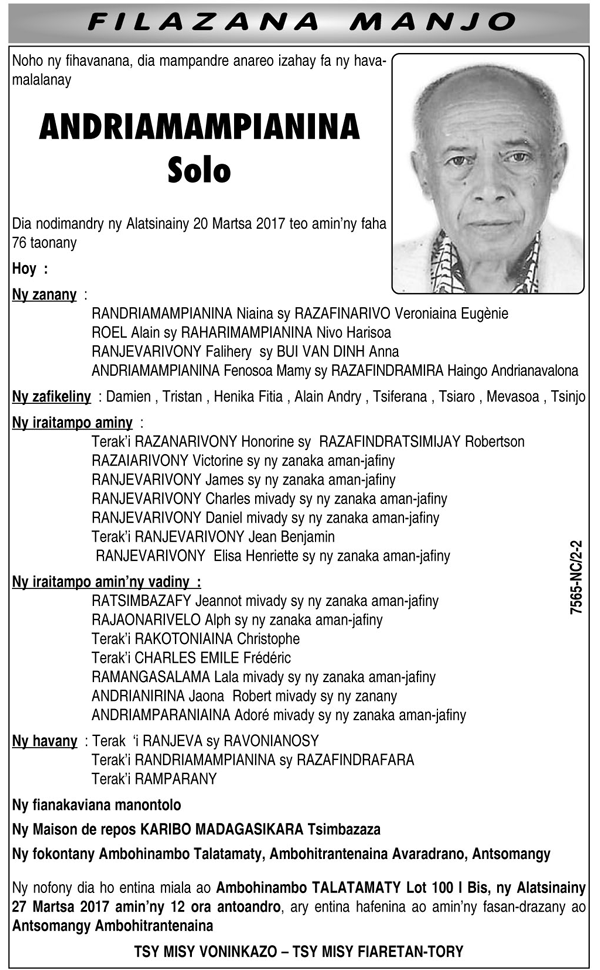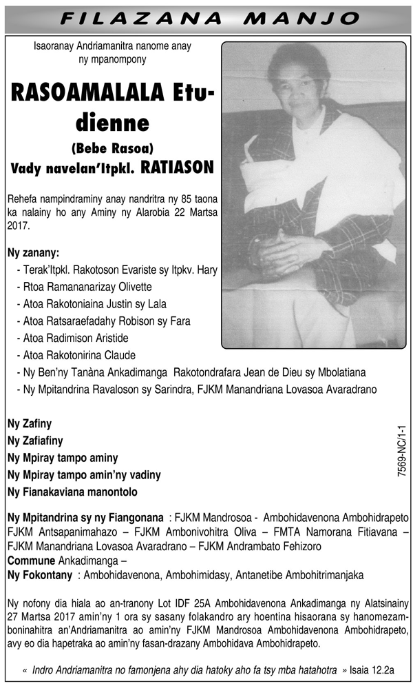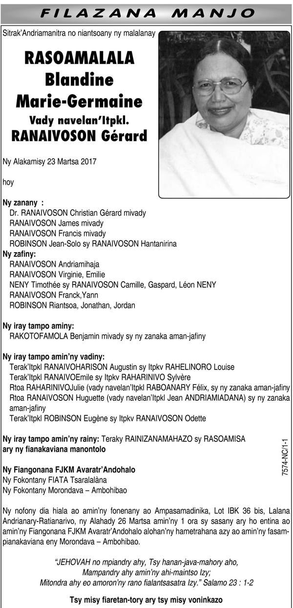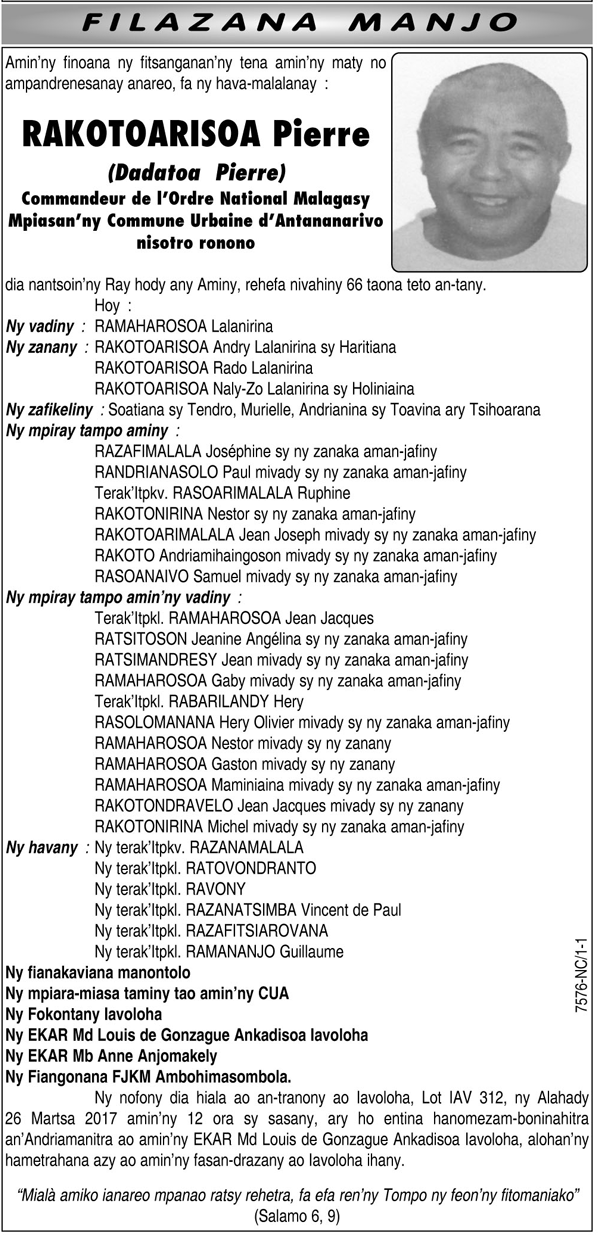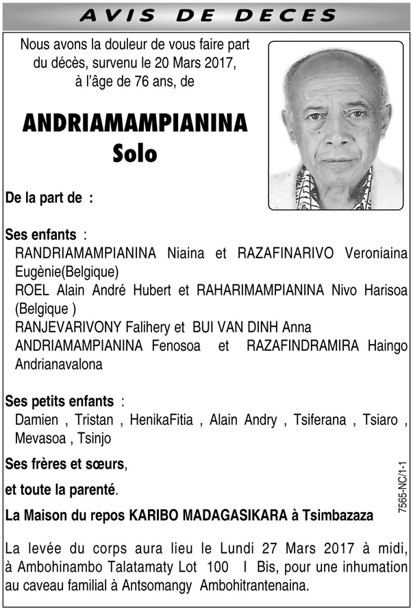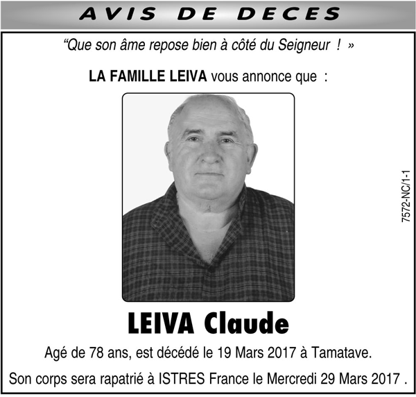 Nécrologie du 25 mars 2017