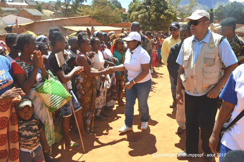 HIMO. Le déplacement de la délégation ministérielle s’inscrivait aussi dans le cadre du relèvement des familles, une mission confiée au MPPSPF qui a lancé un chantier de Haute Intensité de Main d’Œuvre (HIMO). 5 jours durant, près de 800 personnes (à raison de 2 membres de chacune des 396 familles victimes d’incendie et de violence) se sont attelés à des travaux de reconstruction et d’assainissement. Les habitants ont demandé à ce que la construction d’un puits soit intégrée dans ce chantier HIMO. Ce qui a amené la ministre Onitiana Realy à saluer leur courage et leur capacité d’endurance ainsi que leur désir de se relever après les épreuves qu’ils ont endurées.