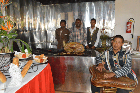 Produit frais. Pour ces « jeudis » en musique, le duo sera surprenant. D’un côté, les bons petits plats du Chef Rahajarizafy, qui veut valoriser les produits frais malgaches. Une aubaine pour ce Chef qui aime travailler les matières et les produits, et qui affectionne la gastronomie malgache. Comme ce sera un rendez-vous hebdomadaire, il cuisinera de tout. « Les jeudis, ce sera un buffet spécial « malagasy », puisque tous les autres jours de la semaine, il y a déjà le méchoui et les autres grillades » explique le Chef Rahajarizafy. En tout cas, pour du bon « sakafo malagasy », rendez-vous ce 2 mars.