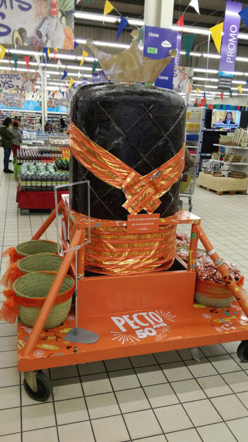 Pour ses 50 ans d’existence, Pecto réalise un record. Le plus grand bonbon jamais réalisé à Madagascar pèse 1500 kg et est exposé à l’entrée de Jumbo Score.