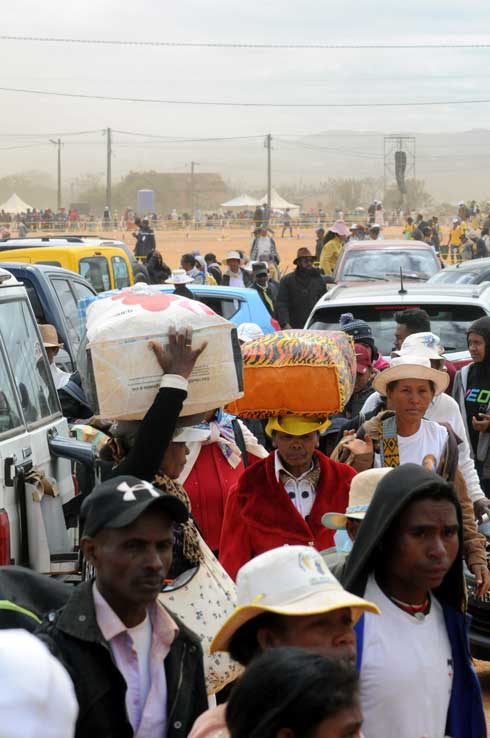 Une foi encore plus ravivée pour les fidèles catholiques après avoir vu le pape, entendu ses paroles et reçu ses nombreux messages, et le cœur heureux d’avoir vécu un moment historique que nombre d’entre eux ne vivront peut-être qu’une seule fois dans leur vie. Certains en ont eu des frissons, d’autres, les larmes aux yeux. Pour eux, la présence, les paroles et les messages du pape François leur ont touché le cœur et l’âme. Oubliées les longues heures passées à Soamandrakizay, à même le sol pour la majorité d’entre eux, dans un nuage de poussières et un froid glacial, dès la nuit de samedi pour la veillée de prières. Il en était de même hier, dimanche, bien avant l’aurore, quand les rues de la ville d’Antananarivo étaient animées comme en plein jour… à 3h du matin ! Car les centaines de milliers de fidèles – frôlant le cap du million de personnes – venus de très loin, rejoignant à pied les axes Androhibe, Antanandrano et Tsarasaotra pour la grande messe, étaient bien déterminés à arriver à destination quoi qu’il advienne, bravant le froid et le vent fort qui persistait. Rien de tout cela n’a réussi à refroidir l’enthousiasme des fidèles, jeunes, adultes, enfants et personnes âgées, bien portants ou malades. Certains d’entre eux ont déjà parcouru des milliers de kilomètres depuis le début de la semaine pour rejoindre la capitale. Bien que physiquement éprouvés par la fatigue et une météo capricieuse, les fidèles confient volontiers avoir vécu un moment intense et unique, lors de la grande messe où ils ont prié à l’unisson.