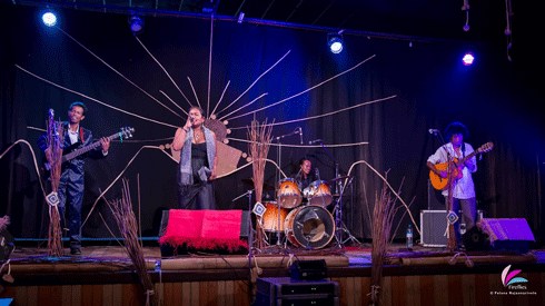 Junior, le « cœur de tambour ». Son instrument de prédilection ? La batterie. Sa manière si singulière de jouer et de s’approprier son instrument fait de lui un batteur hors-pair. Plus à l’aise en jouant du jazz et la musique « typique malagasy », Junior se perçoit comme un « fon’amponga », une personne faite pour donner le battement, tant bien à la batterie qu’à la percussion.