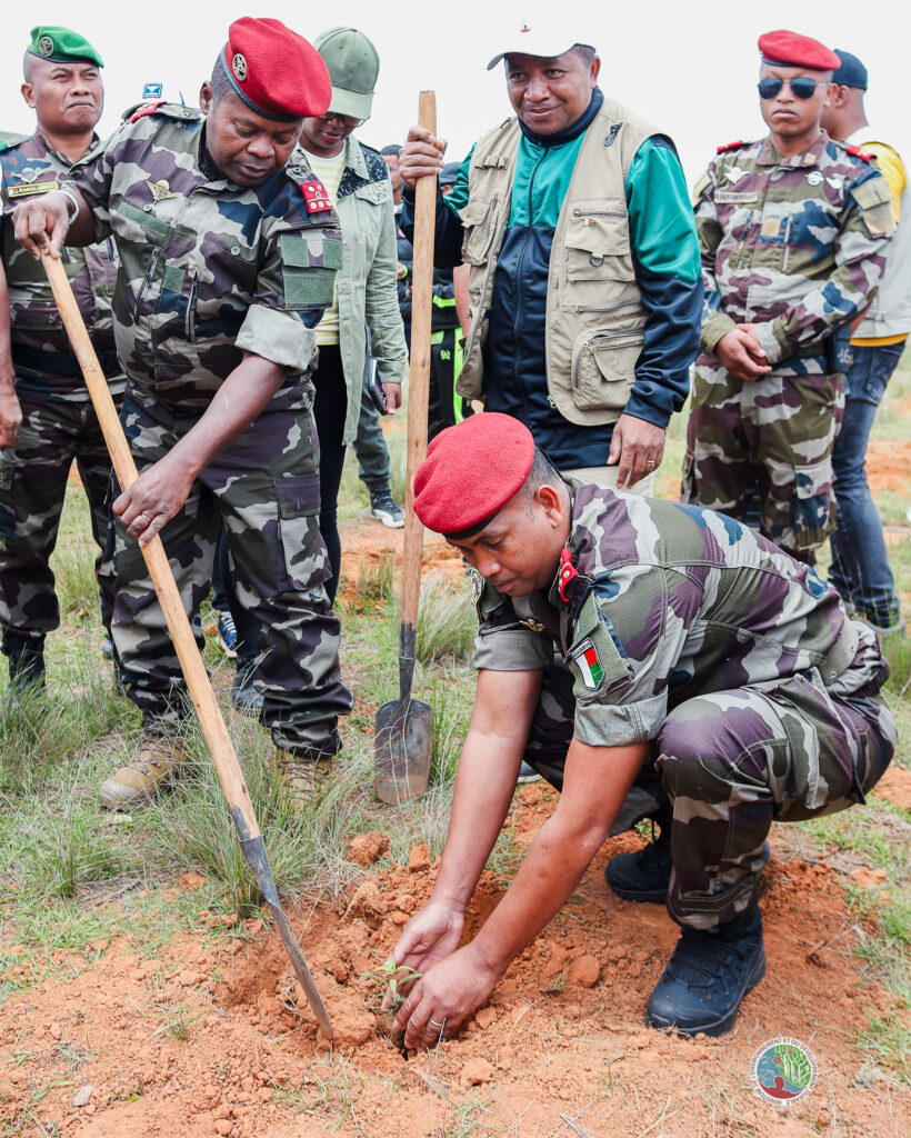 À cette occasion, 12 000 jeunes plants ont été mis en terre sur une superficie de 10 hectares, grâce à la mobilisation conjointe des populations locales et des représentants de l’État. Les essences choisies, à croissance rapide, sont notamment le kininina et le kesika. La gestion et la protection du site, y compris la lutte contre les feux de brousse, seront assurées par les communautés riveraines, conformément aux engagements pris. Le colonel Rampanarivo Thierry a souligné que « la Présidence de la République accorde une attention particulière à la transition vers un environnement plus vert, au renforcement de la résilience face au changement climatique, à la lutte contre la déforestation et à la préservation des ressources naturelles ». Il a rappelé que « le reboisement constitue une responsabilité collective et un devoir citoyen pour l’avenir du pays ».