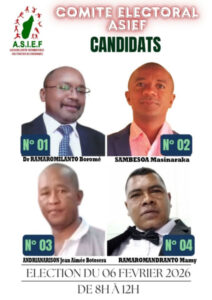 Quatre candidats se disputent la présidence de l’ASIEF : un record qui promet une élection animée ce vendredi au Palais des Sports de Mahamasina. L’actuel président, Andrianarisoa Jean Aimé Botosera, remet son mandat en jeu face à trois challengers, dans une association qui mobilise la fonction publique autour du sport-santé, « médicament gratuit » contre la sédentarité. Suspense et mobilisation sont attendus parmi les délégués des ministères et des C2S.