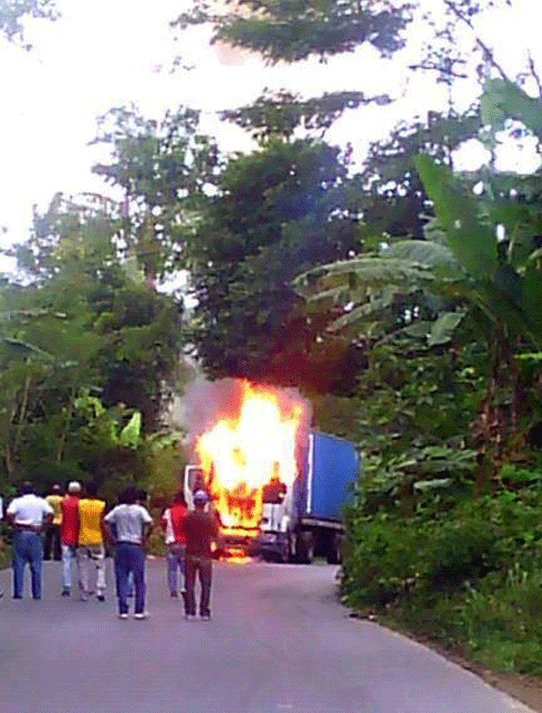 Kamiao mpitondra « friperie » no nirehitra nidedadeda, omaly antoandro tokony ho tamin’ny 1 ora, teny amin’ny làlam-pirenena faharoa, tao Antongombato, manelanelana an’i Marovoalavo sy Marovezo. Niitatra izay tsy izy ny afo ary nanempotra tanteraka ny setroka mainty nandrakotra ny lanitra. Nitohana ihany koa ny fifamoivoizana vokatr’izany. Marihina fa efa nanomboka tao anaty fiolahana ilay kamiao no nidona-tsetroka ary fotoana vitsy monja no nampidedadeda ny afo. Vao tafavoaka ny fiara mantsy ilay mpamily sy ny mpanampy azy dia nirehitra avy hatrany ilay kamiao na ny teo aloha izany na ny taty aoriana. Tsy tena voafaritra mazava hatreto ny nahatonga ny loza, fa raha ny tombatomban’ireo nanatri-maso ny loza, dia mety ho vokatry ny « court circuit » izany. Ny rano tamin’ny renirano tsy lavitra teo no nifanomezan’ireo nanatri-maso tànana namonoana ny afo, izay tena naharitra ela tokoa. Voalaza mantsy fa tsy nahavono ny afo tanteraka ny « extincteur » tao anatin’ilay kamiao.