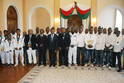 5 millions Ariary.  Après les efforts, le réconfort. Les leveurs de fonte médaillés aux Championnats d’Afrique ont reçu des primes du président de la République, Hery Rajaonarimampianina. 10 médailles ont été remportées par le clan malgache à cette compétition continentale. Un total de primes de 5 millions d’Ariary ont été empoché par les haltérophiles malgaches dont un million d’Ariary pour l’or,  500.000 Ariary pour l’argent et 250.000 pour le bronze.   » Vous avez bien défendu les honneurs du pays au Cameroun. C’est un signe fort que le sport revienne dans le concert des nations », lance le Chef d’Etat. Le ministre de la Jeunesse et des Sports, Jean Anicet Andriamosarisoa  a conduit cette délégation d’athlètes accompagné du président du Malagasy Rugby, Marcel Rakotomalala et du président de la fédération malgache d’haltérophilie, Harinelina Randriamanarivo. Cette année, le sport sera à l’honneur où la Grande Ile sera hôte de plusieurs grands rendez-vous majeurs  comme la CAN Rugby, «Coupe Davis» pour le Lawn Tennis, CAN U 18 de volley-ball,  les Jeux de la CJSOI et les Championnats du monde de pétanque.