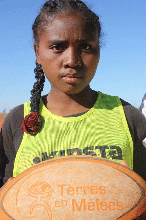 L’association Terres en Mêlées avec l’entreprise Tozzi Green basée dans l’Ihorombe a lancé le projet d’éducation et d’insertion par le rugby avec les jeunes filles du village de Satrokala. Après la dernière compétition organisée regroupant 324 jeunes filles de plusieurs écoles et villages du Sud, voici Cynthia « Il y a 1 an lorsque nous avons lancé le projet Rugby à Satrokala avec Alessandro Berti (PDG Tozzi Green), nous avons immédiatement remarqué les qualités physiques et techniques de Cynthia. Son potentiel est énorme tout comme sa générosité sur le terrain. Cynthia dispose de toutes les qualités de la joueuse que l’équipe nationale malgache recherche: physique, technique, en plus d’être intelligente et combative » a déclaré Pierre Gony, fondateur de l’association Terres en Mêlées. Elle a gagné le trophée de la meilleure joueuse parmi les 324 meilleures filles du Sud Ouest de Madagascar qui ont participé au tournoi. Toujours selon ce technicien de rugby « alliant puissance, vitesse de déplacement et technique, elle est capable de faire la différence à tout moment sur le terrain et dès qu’elle a le ballon dans ses mains, attention pour celles et ceux qui sont sur son passage ».