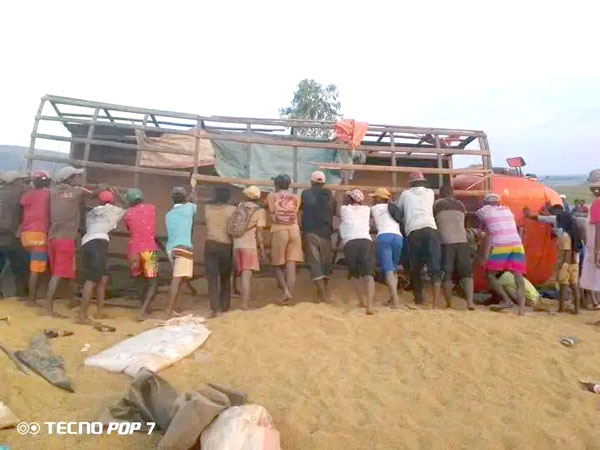 Un grave accident de la circulation s’est produit dans l’après-midi du jeudi 16 octobre 2025 sur la route secondaire reliant Ambohitromby à la ville de Tsiroanomandidy, plus précisément à Ambatobe, fokontany d’Antanetibe, commune rurale de Soanierana, district de Tsiroanomandidy. Le drame s’est produit vers 15h45 sur le point kilométrique 87+200 de la RNT 36, à environ 200 mètres du village d’Antanetibe. Aussitôt alertés, les gendarmes accompagnés des éléments du poste de secours routier se sont rendus sur les lieux pour porter assistance et procéder aux constatations d’usage. À leur arrivée, la scène était d’une rare violence. Sept personnes ont trouvé la mort sur le coup : six d’entre elles, âgées de 25 à 55 ans, étaient originaires du district de Fenoarivobe, tandis que deux autres victimes, toutes deux de sexe masculin, n’ont pas encore été identifiées. Plusieurs blessés ont été évacués d’urgence vers le centre de santé de base II d’Antanetibe. Le véhicule impliqué est un camion de marque Mercedes-Benz 1513, qui transportait à la fois des marchandises et des passagers. D’après les premières constatations, l’accident serait dû à un excès de vitesse combiné à une imprudence de conduite. Le poids lourd aurait dérapé sur une ligne droite avant de quitter la chaussée et de se renverser dans un fossé.