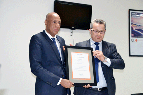 Le ministre du Commerce et de la Consommation, Chabani Nourdine a remis le certificat ISO/CEI 17025 au DG de SGS Madagascar Cédric Catheline