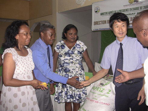 Technique combinée. La remise officielle de ce don a eu lieu le mois dernier à Toamasina, à l’occasion d’une session de formation en technique PAPRiz. Ce don est composé notamment de 800 kg de semences de riz certifiées, de 3 000kg d’engrais DAP, de 1 550 kg de NPK, de 200kg d’urée et de 5 000 kg de sulfate d’ammonium, un sous-produit du projet Ambatovy utilisé sous forme d’engrais pour la riziculture irriguée. « Près de 200 paysans leaders nominés dans les cinq régions d’intervention de PAPRiz utilisent ces sacs dits PAPriz, y compris le sulfate d’ammonium en remplacement d’urée. La fédération des usagers de l’eau « Tsaravohi » du PC 23 sud d’Alaotra Mangoro a reçu entre autres, 100 sacs  PAPRiz. Il y a également d’autres paysans modèles bénéficiaires dans les deux nouvelles régions d’intervention du projet, à savoir Atsinanana et Analanjirofo, qui ont eu 30 sacs utilisés pour les parcelles de démonstration pour la campagne culturale 2016-2017 », a fait savoir Habara Ryuzo, le coordinateur du projet PAPRiz II. Notons que ces paysans leaders ou modèles qui ont été formés par le projet, vulgarisent les techniques PAPRiz auprès de leurs pairs. Il s’agit notamment d’une technique japonaise combinée avec la technique malgache sur la culture rizicole.