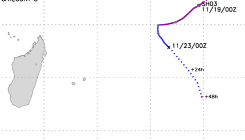 Annabelle, premier système dépressionnaire de la saison cyclonique était à plus de 2300 km de Madagascar, hier matin. Située à l’Est, au large de nos côtes, Annabelle, qualifiée de tempête tropicale modérée, suit une direction sud-est à une vitesse d’environ 19km/h. Les vents près du centre soufflaient en moyenne à 80km/h, hier. A partir de ce jour et dans les jours qui viennent, ce système évoluera sans doute en dépression tropicale le 25 novembre et en dépression résiduelle, le jour suivant. La tempête Annabelle, encore loin de Madagascar, n’influe pas encore sur le temps qu’il fait dans la Grande Ile.