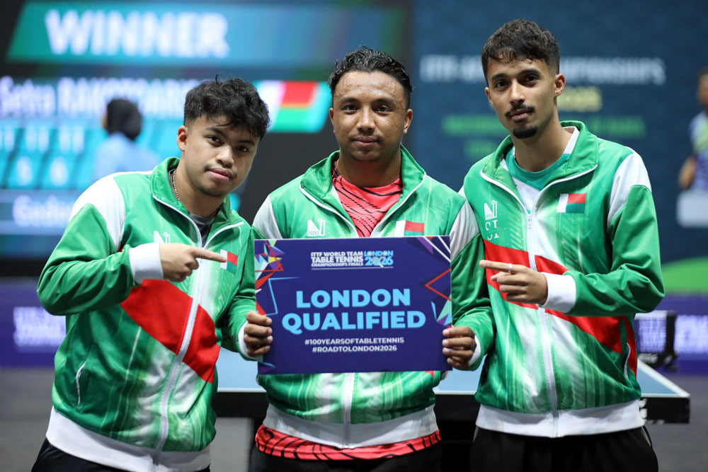Les équipes masculine et féminine ont validé leur ticket en Tunisie pour le Championnat du monde de tennis de table par équipe. Elles ont réalisé un parcours exceptionnel lors des Championnats d’Afrique par équipe qui se sont tenus cette semaine à Tunis. Au terme d’une compétition intense, les deux équipes ont composté leur billet pour la prestigieuse Coupe du Monde par équipe, qui se déroulera à Londres en 2026. Les hommes confirment, les dames écrivent l’histoire. Pour l’équipe masculine, cette qualification a un goût de confirmation. Emmenés par un Fabio Rakotoarimanana des grands jours, les hommes ont fait preuve d’une solidité mentale et d’une technique impressionnante face aux géants du continent. Ils atteignent les quarts de finale avant de céder face aux Marocains. Du côté des dames, la troupe à Karen Raharimanana s’invite pour la première fois pour les mondiaux. Elles ont remporté le ticket pour Londres devant les hommes. Elles se sont qualifiées pour les quarts de finale de la compétition. Elles ont perdu face aux Algériennes par 3 victoires à 0. C’est la toute première fois dans l’histoire de la discipline que Madagascar qualifie une équipe féminine pour un Championnat du Monde. C’est une délégation complète, qui défendra les couleurs malgaches à Londres en 2026.