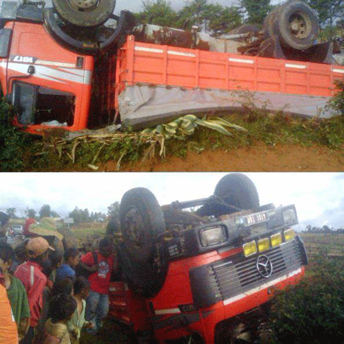 Saika loza mahatsiravina indray no niseho tamin’ny lalam-pirenena RN7 omaly tolakandro. « Camion » iray hihazo an’Antananarivo no nivarina an-kady teo amin’ny tetezan’Ambohimandroso iny. Nivadika ambony ambany tanteraka ity « camion » ka nifatratra teny an-tanimbary. Olona roa no tao anatin’ilay fiara : ny mpamily sy ny mpanampy azy izay tena naratra mafy tokoa. Soa fa tsy nisy ny aina nafoy. Efa nentina notsaboina any amin’ny hopitaly izy ireo. Tsy fantatra mazava hatreto tena fototry ny loza. Ao ny milaza fa resi-tory ilay mpamily ka nivily tampoka ny familiana. Ao kosa ireo nanamarika fa mamo ity farany. Na izany na tsy izany, tsara hatrany ny manipika fa efa tena mila fanamboarana iny tetezana iny. Tsy vitsy amin’ireo mpampiasa an’iny làlam-pirenena iny no mitaraina ny amin’ny haratsin’ity foto-drafitrasa iray ity. Raha ny zava-misy tokoa mantsy dia misy lavaka eo afovoan’ity tetezana ity efa fotoana maharitra izay. Ny làlana rahateo tery dia tery. Tsy mahagaga araka izany raha misy amin’ireo fiara fitateram-bahoaka, indrindra ireo lehibe toy ny Sprinter, no mivily amin’ny sisiny. Aterina hatrany ny antso amin’ny tompon’andraikitra mba hijery akaiky ny zava-misy mba hisorohana ny loza, mba tsy hionona amin’ny honohonon-dresaka fa misy lolo iny toerana iny.