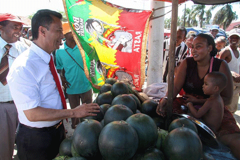 Engouement populaire.Après s’est entretenu au Magro avec les opérateurs économiques locaux et des politiciens autres que ceux issus du TIM, Marc Ravalomanana et le Pr James Robinson ont fait le déplacement au « Bazar Kely ». Ils ont été accueillis par un engouement populaire. L’ancien président a drainé derrière lui une foule de personnes qui lui a exprimé son respect. Les marchands ont lancé des cris de détresse devant l’ancien président qui les ont écoutés attentivement. Les marchands de « Bazar Kely » voulaient transmettre au capitaine d’industrie qui pilote lentement mais sûrement la relance des activités de son empire Tiko que rien ne va plus dans le pays.« Revenez, sauvez-nous Monsieur le Président! », ont-ils crié à l’endroit de Marc Ravalomanana qui n’a pas hésité à serrer les mains de ceux qui lui ont fait appel. Bref, le président national du TIM a fait un succès populaire dans le Grand Port.A rappeler que c’est le régime Ravalomanana qui a fait de Toamasina la Capitale économique du pays. Ce régime y a réalisé des grands projets de développement. C’est par exemple sous Marc Ravalomanana que Madagascar a obtenu le financement japonais pour l’extension du Port de Toamasina.