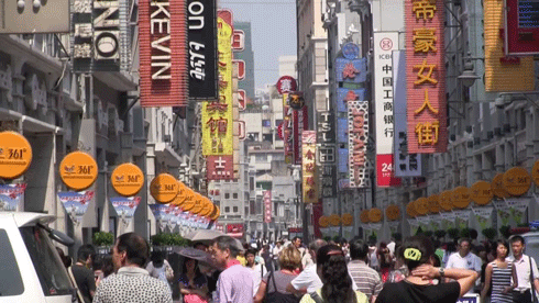 Un quartier commerçant de Guangzhou très fréquenté par les touristes.