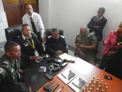 La saisie de deux pistolets par des policiers du Service antigang de la police nationale à Anosy à Ampasika le 11 septembre dernier chez les deux bandits abattus, qui tentaient d’attaquer un vendeur de bovidés, ont prouvé l’existence d’un réseau bien structuré de trafiquants d’arme dans la Capitale. Un responsable de la brigade criminelle de la police nationale à Anosy a conclu sur ce résultat hier à la presse quand il a présenté les succès des enquêtes menées par ce service sur cette affaire. Le 12 septembre, la police a reçu un renseignement digne de foi indiquant la présence de trafiquants d’armes rodant dans la ville. Après un tapissage de près d’une semaine, les limiers de la BC sont tombés sur sept individus dont trois femmes. Deux pistolets de marque Beretta munis de huit balles et 30 cartouches de chevrotine ont été saisis sur les suspects. Deux de ces derniers ont été surpris alors qu’ils étaient en train de livrer un pistolet à un client. L’enquête a révélé qu’un élément des forces de l’ordre dont le corps d’appartenance n’a pas été mentionné, figure parmi les trafiquants arrêtés. Selon les informations, une centaine de ce genre d’arme circulent encore quelque part notamment dans les environs d’Ivato. La brigade criminelle ajoute que des fusils à pompe se trouvent également entre les mains des trafiquants. Parlant de l’existence d’un élément des forces de l’ordre, les enquêteurs de la police affirment ne pas être disposés à se plier à toute sorte d’intervention quelle que soit son origine. Le problème dans ce méfait est de savoir d’où viennent ces armes.