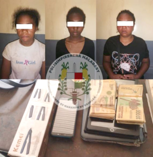 Une intervention rapide des éléments de la Police nationale a permis d’interpeller trois femmes soupçonnées d’être impliquées dans un vol avec effraction survenu le 9 décembre 2025, aux alentours de 11 heures, dans le quartier d’Andraisoro Ampasambahiny, Ve Arrondissement de la Commune urbaine d’Antananarivo.