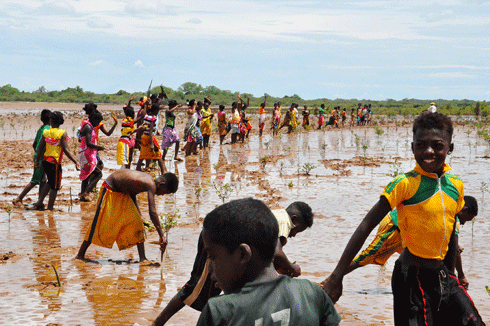 La restauration des mangroves est une des actions de conservation clés menées par le WWF dans le paysage ManamboloTsiribihina depuis 2007. Des campagnes annuelles de plantation de palétuviers ont été menées avec les communautés locales et les jeunes, soit en tout, un reboisement de plus de 2 millions de palétuviers. Sur le site d’Andranokaolo, près du village de Kaday, à 119 km au Nord-Ouest de Morondava, on a constaté la renaissance des mangroves étalées sur une superficie de 340 hectares, et ce, en l’esapce de 10 ans. De plus, 1 000 hectares de mangroves se sont régénérés de façon naturelle suite aux reboisements, même en dehors de la zone de restauration.